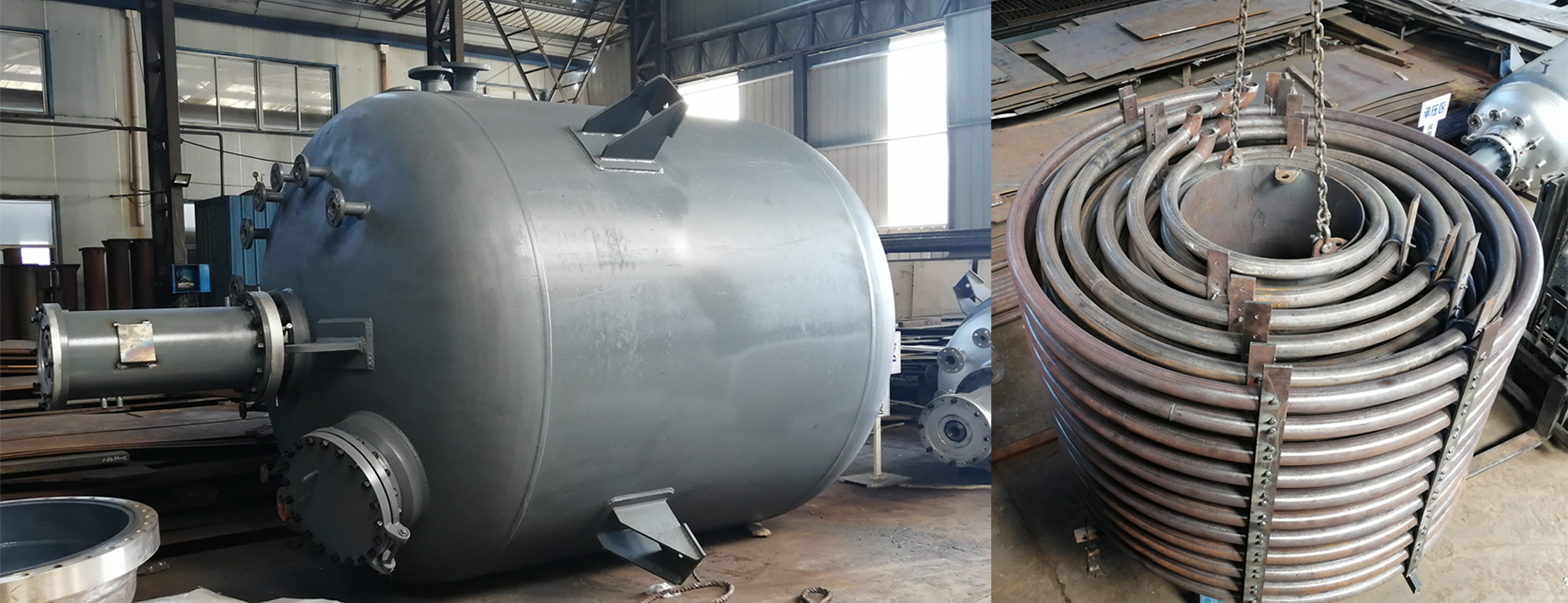 加氫反應(yīng)分為吸熱反應(yīng)和放熱反應(yīng),有些加氫反應(yīng)在反應(yīng)過程中會釋放大量的熱能。為了生產(chǎn)安全,并及時降低釜內(nèi)溫度,有些工藝要求釜內(nèi)配大面積的冷卻盤管。此時單層冷卻盤管無法滿足工藝要求,需要雙層或更多層盤管有效及時降溫。正威機(jī)械生產(chǎn)的6層盤管內(nèi)配吸氫攪拌槳,加…